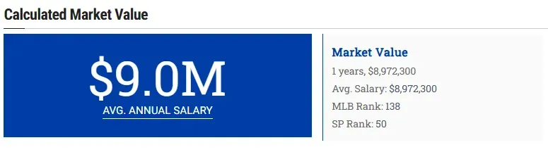 Spotrac values Scherzer at only a $9 million average annual salary. While this is not a definitive salary figure, it indicates that he could potentially return to the Blue Jays for an amount inferior to what he earned last year.