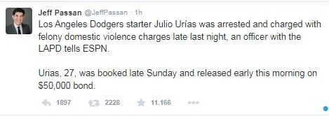 According to Jeff Passan, he was arrested on the night of September 3 at his home, the same night the Los Angeles Dodgers were winning the final game of the series against the Atlanta Brave 3-1.