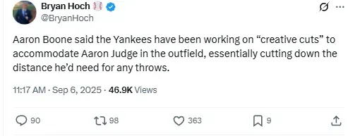 Boone explained that the Yankees are reducing the distance Judge must throw on plays, relying on intermediate fielders to handle long relays. “We’ve been working on creative cuts to accommodate Aaron Judge in the outfield,” Boone said according to Bryan Hoch. “Essentially cutting down the distance he’d need for any throws.”