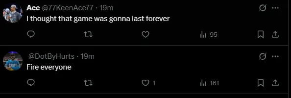 While fan reactions on social media were mixed, frustration dominated the conversation on X, with many criticizing poor decisions and what they saw as a lack of effort from some players.