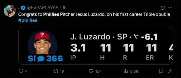 NBC Phillies analyst Ricky Bottalico also questioned how Luzardo was handled: “Pathetic that the Phillies left Luzardo in the game to take a beating when he didn’t have his best stuff… You don’t do that to a guy who’s been good all year!”