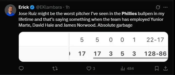 There’s no clear answer, but according to On Pattison analyst Anthony SanFilippo, the Phillies may have intentionally waited to remove Luzardo in order to avoid using key relievers like Kerkering, Strahm, or Romano in a game that had already slipped away. Meanwhile, other bullpen arms — Lazar, Hernández, and Banks — had pitched the previous night.