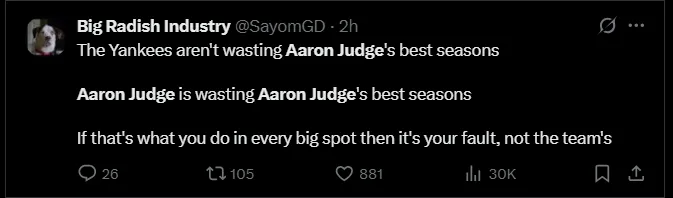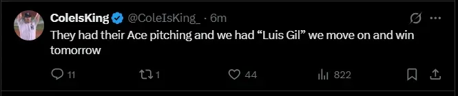 “BOONE had to use the bullpen differently either way because the game was a 1 run game. But he had to choose Weaver who has been struggling to finally put us down to sleep tonight. Boone gives away games,” wrote one critical fan on X following the loss.