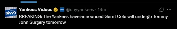 This is the same issue the Yankees faced with Cole at the start of the 2024 MLB season when he was unable to play for several months. However, this time the situation is much worse, as he won’t be able to return until the next season, assuming he fully recovers.