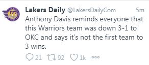 The social media reactions were not long in coming as everyone was surprised with the Lakers’ victory over the Warriors knowing that they are ‘slightly’ underdogs against the defending champions.