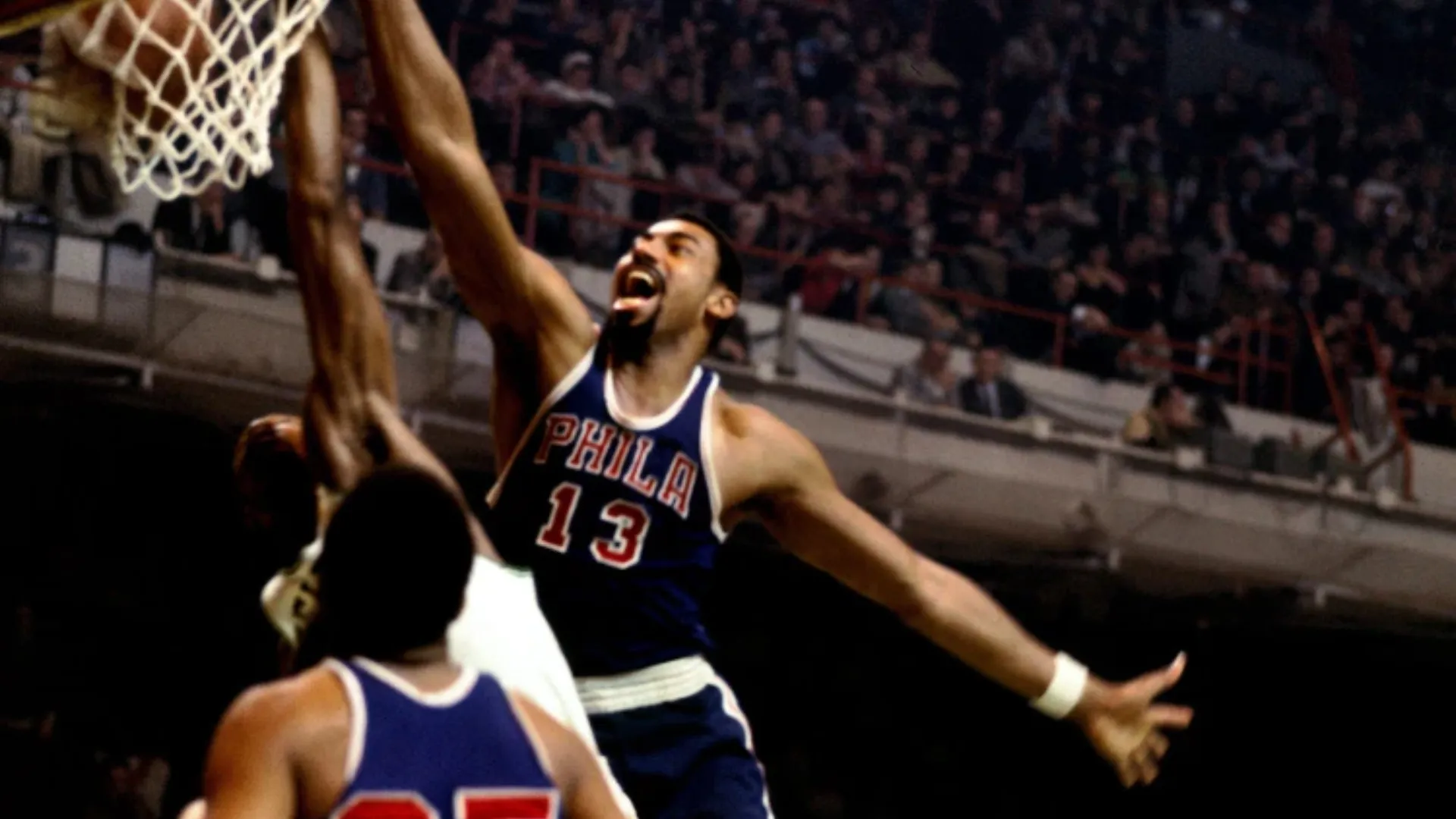 Wilt Chamberlain’s 100-point game came on March 2, 1962, when the Philadelphia Warriors defeated the New York Knicks 169–147. He dominated the game primarily through relentless interior scoring, finishing the night making 36 field goals, repeatedly scoring around the rim against a Knicks defense that struggled to contain him throughout the game.