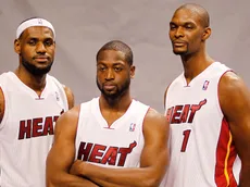 © Mike EhrmannChris Bosh #1 of the Miami Heat reacts after making a basket in the first quarter while taking on the San Antonio Spurs