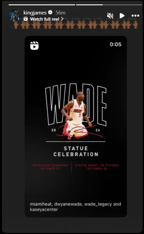 LeBron James shared the news on his Instagram stories, accompanied by several raised hands emojis. Wade’s former teammate on the Heat showed his support and admiration for the player, who is considered one of the greatest in franchise history.