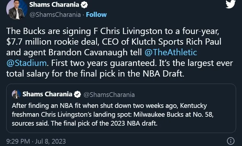 At least Chris Livingston is guaranteed $3,011,420. The rest of the contract will depend on his performance during the two upcoming seasons, where the Milwaukee Bucks aim to remain contenders.