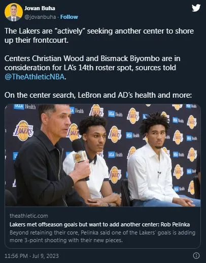According to an article in The Athletic and reporter Jovan Buha, the Lakers are actively looking for another center to cover the 14th spot on the roster. Two names came to light: Christian Wood and Bismack Biyombo.