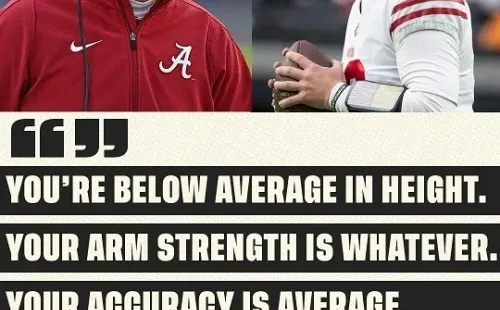Nick Saban, Alabamaâs head coach, told Purdy harsh things: âYouâre below average in height. Your arm strength is whatever. Your accuracy is average.â (via The Athletic).