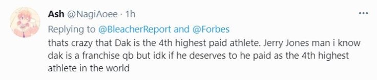 Fans react to Dak being the fourth highest-paid athlete in 2021