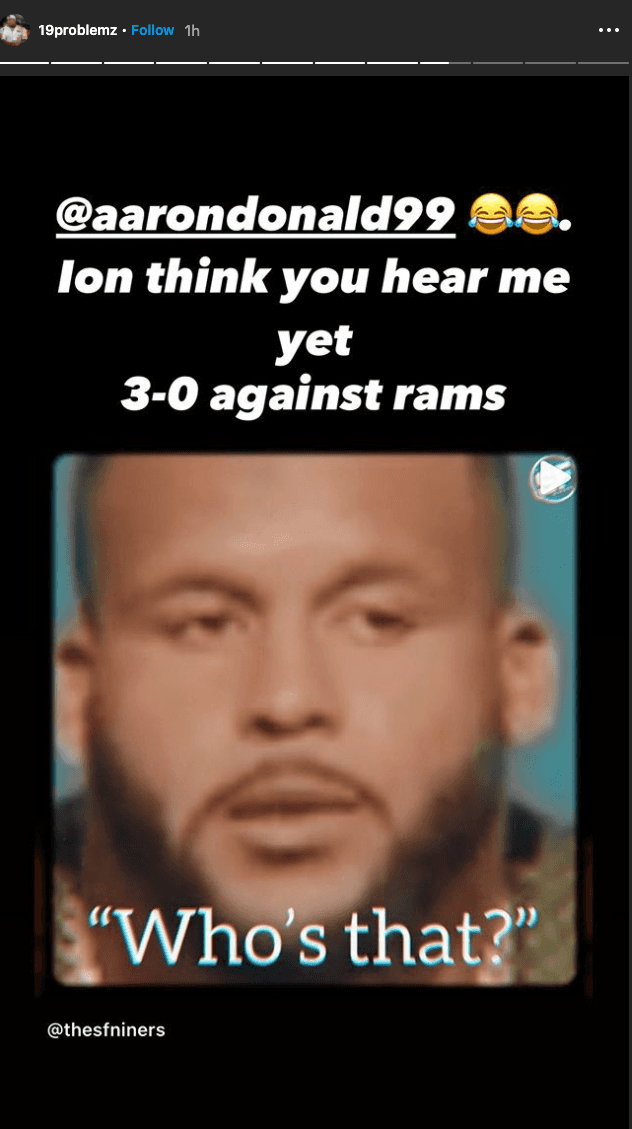 Donald didn’t have the best game, as he was dominated by 49ers guard Daniel Brunskill for a big part of the game, so Deebo could have used that in his favor with his response to Donald.