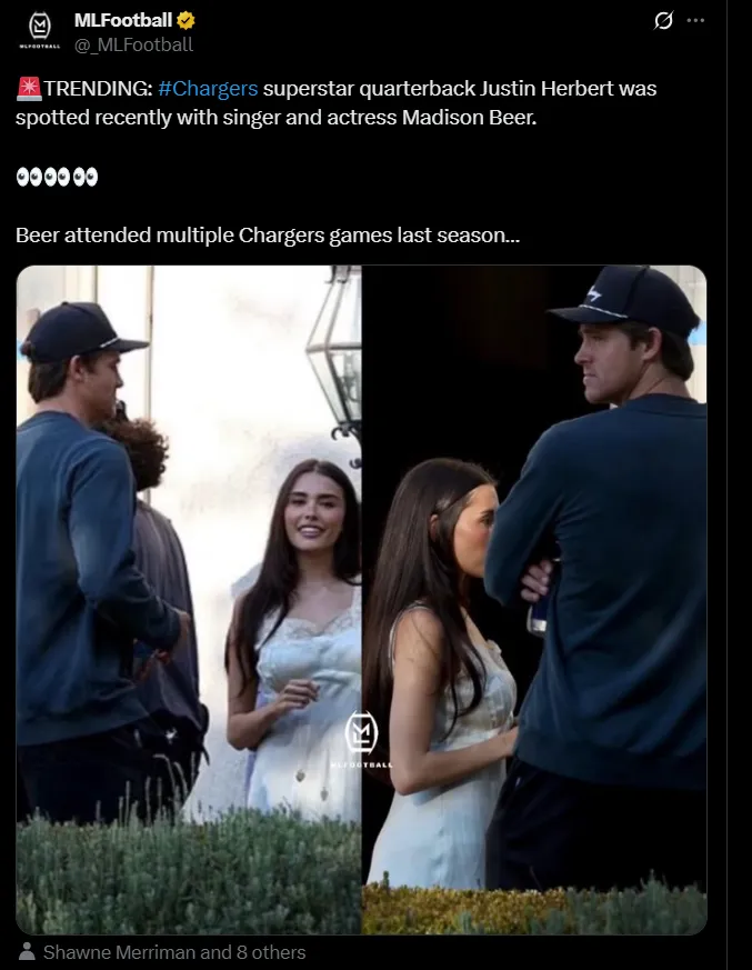 Justin Herbert, quarterback of the Los Angeles Chargers, is sparking plenty of attention off the field after being spotted with pop star Madison Beer. The two were seen together during what appeared to be a music video shoot, immediately igniting speculation online about whether a new celebrity couple is emerging.
