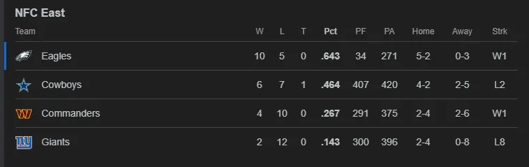 The Eagles now stand as the undisputed leaders and champions of the NFC East. Meanwhile, the Cowboys have been officially eliminated from playoff contention. The Commanders had nothing left to play for, but the result ensures they won’t finish in the division’s cellar.