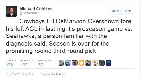 The Dallas Cowboys had eight linebackers for the upcoming 2023 NFL season, but DeMarvion Overshown was injured during the preseason game against the Seattle Seahawks. This is bad news for the defensive line.