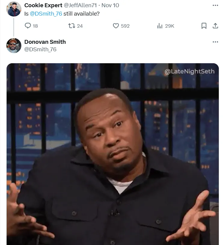 Smith left the door open on a hypothetical return to Kansas City with a cryptic post on social media. The 31-year-old replied to a post on X (formerly known as Twitter) from former Chiefs’ OL Jeff Allen, who asked if he’s still available. Though his answer wasn’t entirely clear, it fueled rumors of a potential reunion with Reid and Patrick Mahomes.
