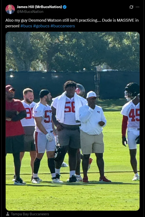 “The Bucs placed Watson on the non-football illness list, even though he was able to work for about 30 minutes on conditioning Wednesday,” Stroud wrote, noting that Watson joined the Buccaneers weighing over 460 pounds.