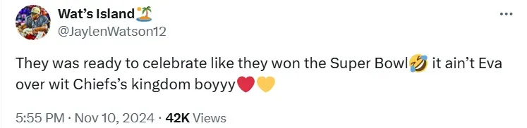āThey was ready to celebrate like they won the Super Bowl it aināt Eva over wit Chiefsās kingdom boyyy,ā Watson wrote on his X (formerly known as Twitter) account, with a clear dig at Nix and Paytonās team for preparing to celebrate before the game was over.