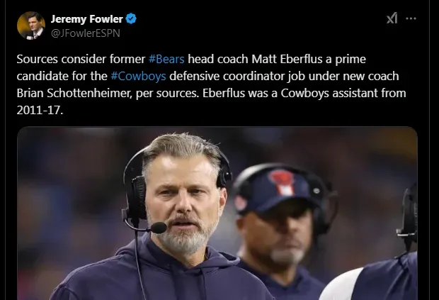 According to a report from Jeremy Fowler, the leading candidate for the defensive coordinator job is Matt Eberflus, who was with the Cowboys from 2011 to 2017. Eberflus most recently served as the head coach of the Chicago Bears but was fired mid-season after struggling to turn things around.