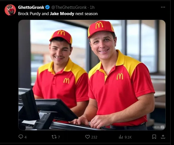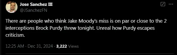 49ers fans—and others—didn’t hold back after Jake Moody’s performance. He became the target of countless memes and harsh criticism across social media platforms. Even quarterback Brock Purdy wasn’t spared, as some fans on X (formerly Twitter) included him in their commentary following the loss to the Lions.