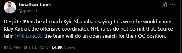Kyle Shanahan is doing everything he can to ensure the San Francisco 49ers have a successful 2025 season. However, it was recently revealed that his plan to name Klay Kubiak as offensive coordinator could be blocked by an NFL rule.