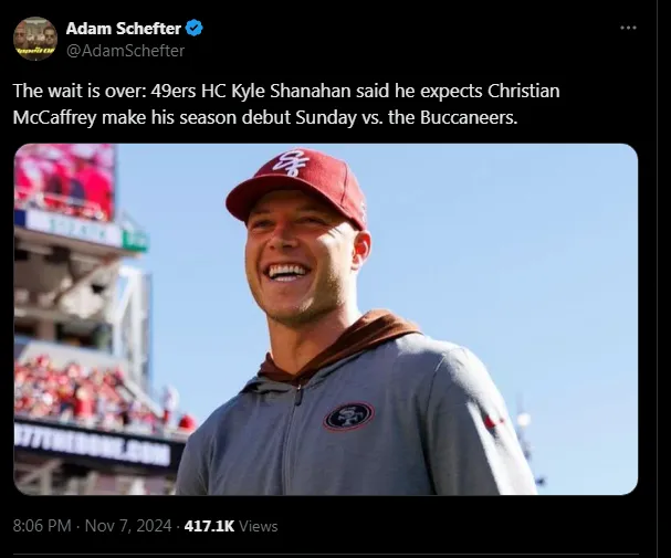 McCaffrey has been sidelined since reports emerged in August 2024 that he suffered an Achilles tendon injury. He had been dealing with tendinitis, which could have kept him out for the rest of the season. However, things improved for him much sooner than expected.