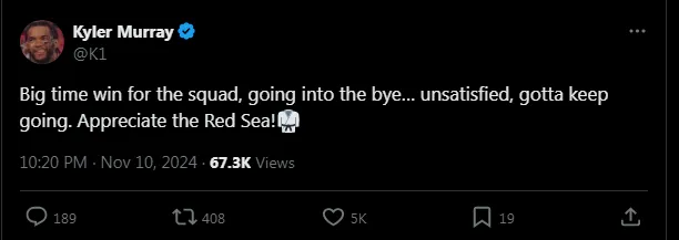 Before the Cardinals could enjoy their time off, quarterback Kyler Murray took to his personal X account to share a message about the teamās performance. While he acknowledged the win against the Jets as a solid effort, he emphasized that he wasnāt fully satisfied.