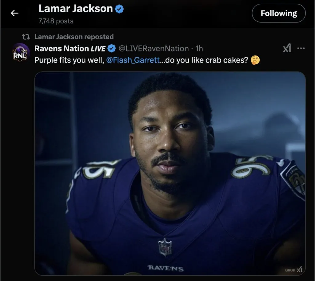 In a social media repost, Jackson tempted Myles Garrettthe 2023 NFL DPOY with the Cleveland Browns—by sharing a Radio Nations Live post featuring an edited image of Garrett in a Ravens uniform.