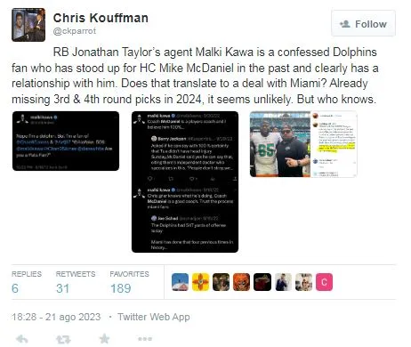 According to an investigation by Chris Kouffman, Taylor’s agent, Malki Kawa, is a fan of the Dolphins and may have a connection to head coach Mike McDaniel. This could increase the chances of Taylor signing with the Dolphins.