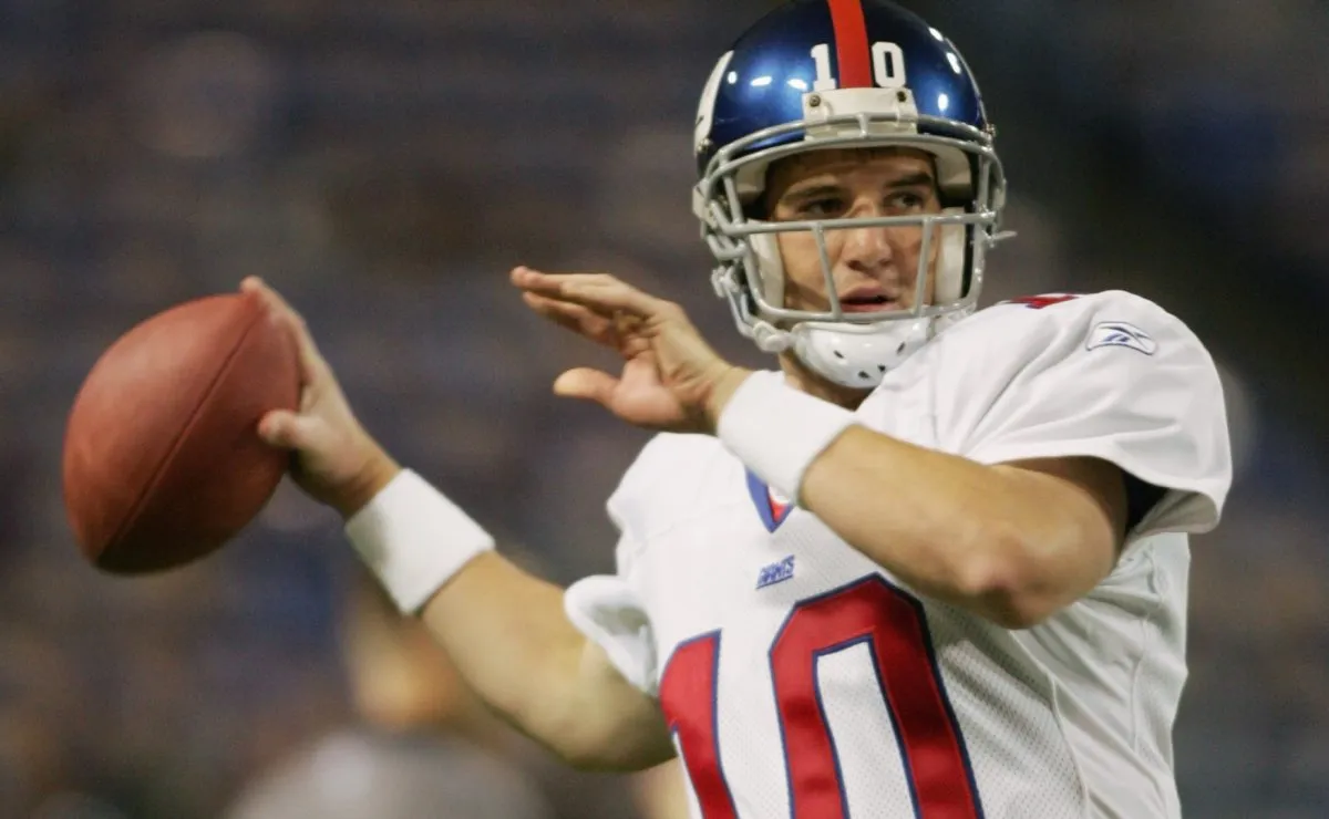 Eli Manning #10 of the New York Giants warms up prior to the game against the Minnesota Vikings on October 31, 2004. (Source: Jonathan Ferrey/Getty Images)