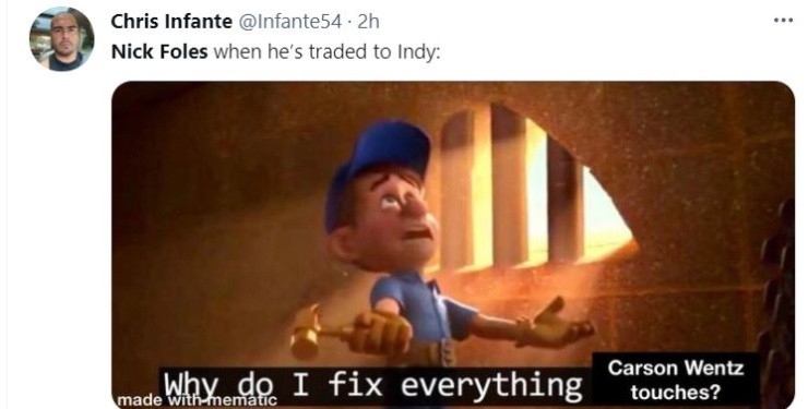 Following a memorable Super Bowl victory in early 2018, Foles struggled to perform at his best in Jacksonville Jaguars and Chicago. A trade would make sense for all parties involved, as the Colts would be receiving an experienced QB to fill Wentz’s vacancy, the Bears could get something they need morein return, and Foles gets a better role with familiar faces by his side. As expected, NFL fans were all over social media reacting to this possibility and have shared hilarious memes to make the best of it.