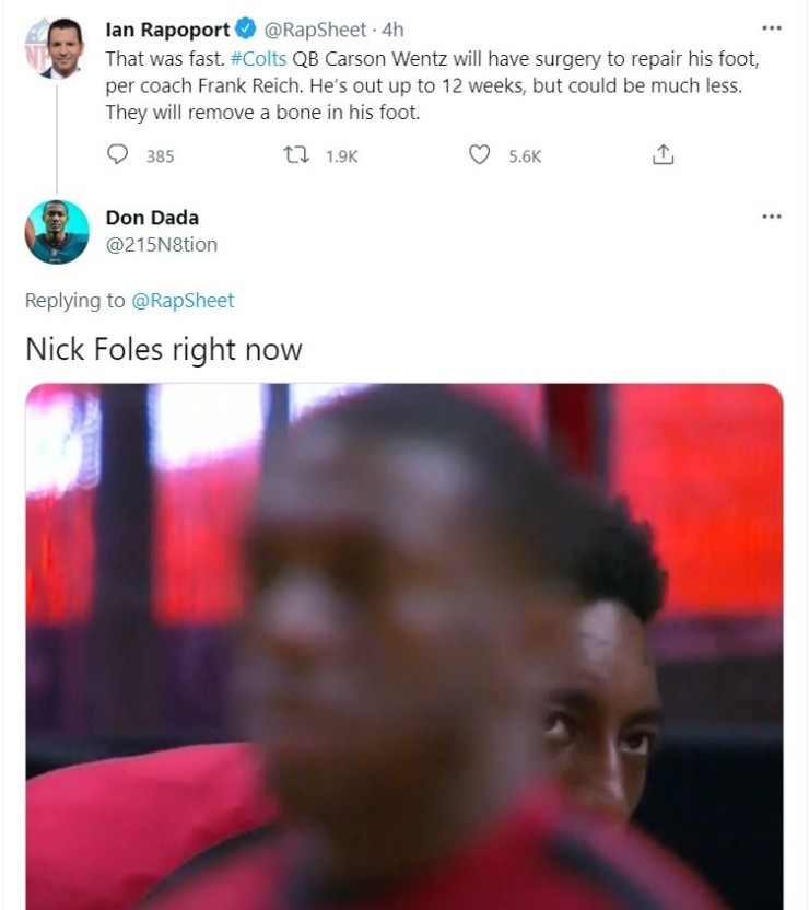 Fans react to the possibility of Nick Foles replacing Carson Wentz in Indianapolis