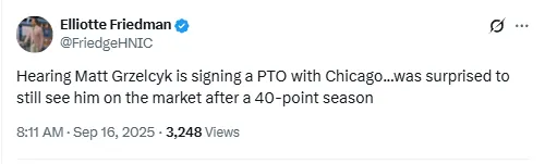 Grzelcyk’s availability on a PTO underscores the precarious balance teams face between veteran production and rebuilding for the future. “Hearing Matt Grzelcyk is signing a PTO with Chicago… was surprised to still see him on the market after a 40-point season,” Friedman shared on “X”.