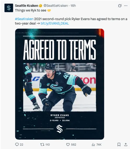 Kraken general manager Jason Botterill expressed confidence in Evans’ development, saying, “Ryker took a positive step forward in his first full season in the NHL.” Botterill said, according to NHL.com. “Since turning pro, he’s shown improvement year over year, and we’re confident he’ll take his game to another level next season. We’re happy to have him under contract.”