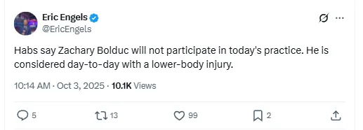 According to Sportnet’s Eric Engels, “Habs say Zachary Bolduc will not participate in today’s practice. He is considered day-to-day with a lower-body injury.” The Canadiens will closely monitor his status in the lead-up to Wednesday’s opener against the Toronto Maple Leafs, leaving uncertainty about his availability.