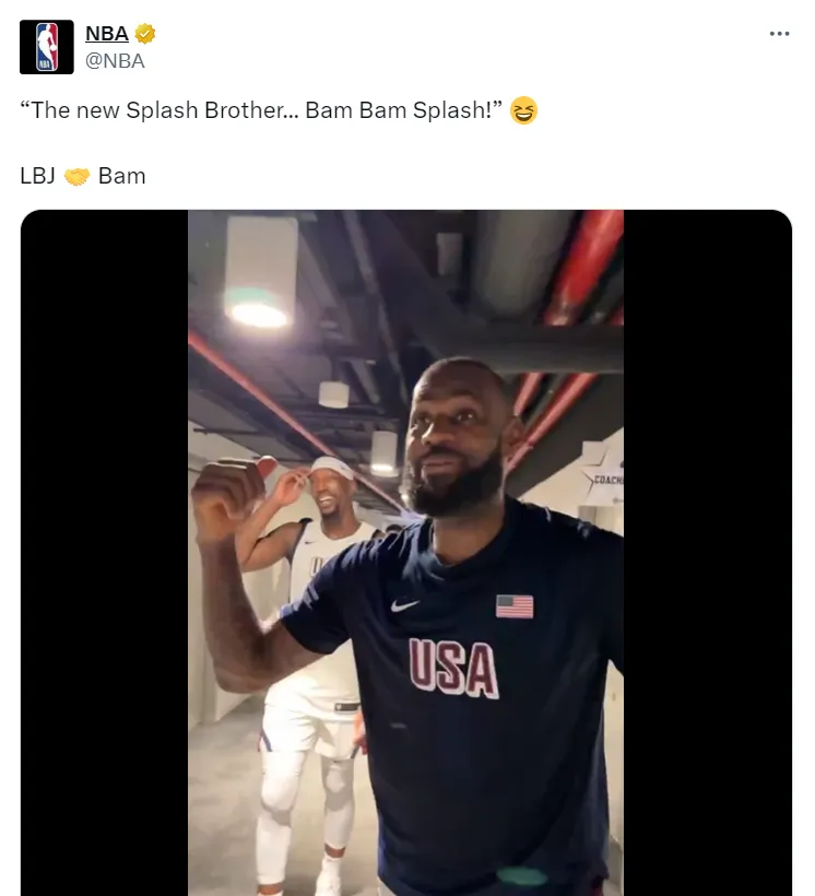 “The new Splash Brother! Bam Bam Splash right there,” said LeBron while pointing at Miami Heat center Bam Adebayo in the tunnel after Team USA’s 105-79 win over Serbia in an exhibition game.