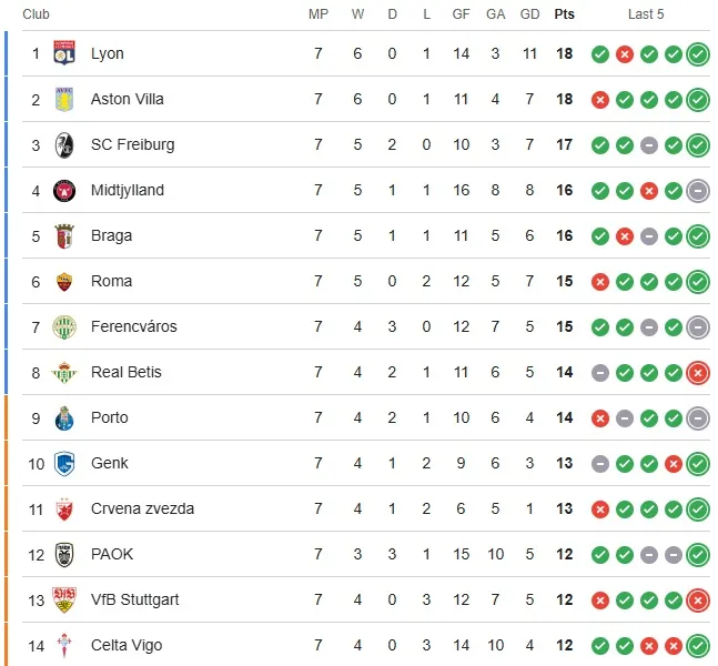 Olympique Lyon and Aston Villa enter the final day as the only two teams to have already secured their direct tickets to the Round of 16. Both clubs sit atop the table with 18 points, having dominated the league phase with six wins apiece.
