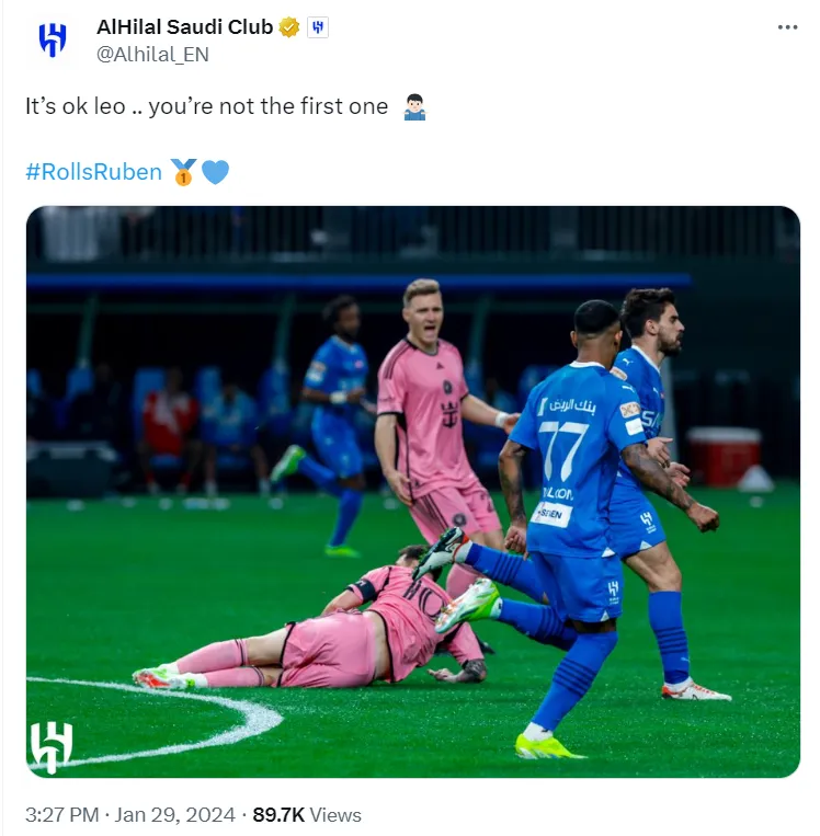 Not only did Al-Hilal poked fun at Inter Miami for their early advantage in the match, but their social media team went on to take a direct jab at Messi just a few minutes later. āItās ok leo .. youāre not the first one,ā the post read.