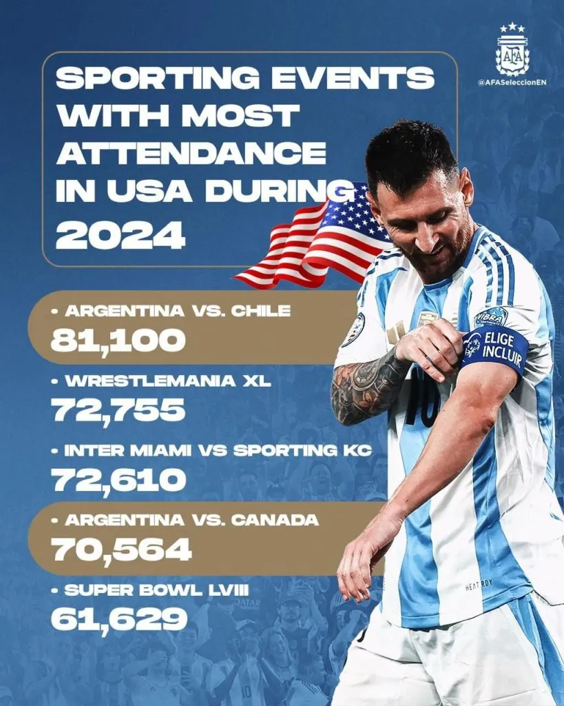 Now the Argentine Federation shared on LinkedIn just how popular the Argentine national team is by showing that Argentina has been the main attraction of two of the top five most attended sporting events in 2024.