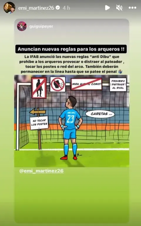 Martinez reposted an Instagram story that complains against the new rule, which will not allow the Argentine icon do his thing anymore. Dibu and every other keeper on Earth will have to adjust to this significant change, which will probably make saving penalties an even more difficult task.