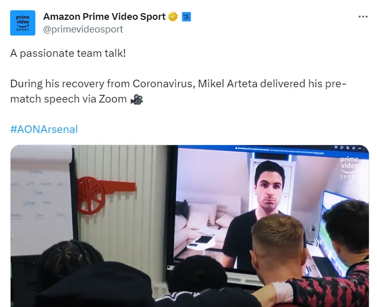 From a TV screen, the Arsenal boss delivered an epic pre-match talk that went viral as Amazon Prime Video captured the moment for the āAll or Nothingā series centered on the Gunnersā 2021-22 campaign.