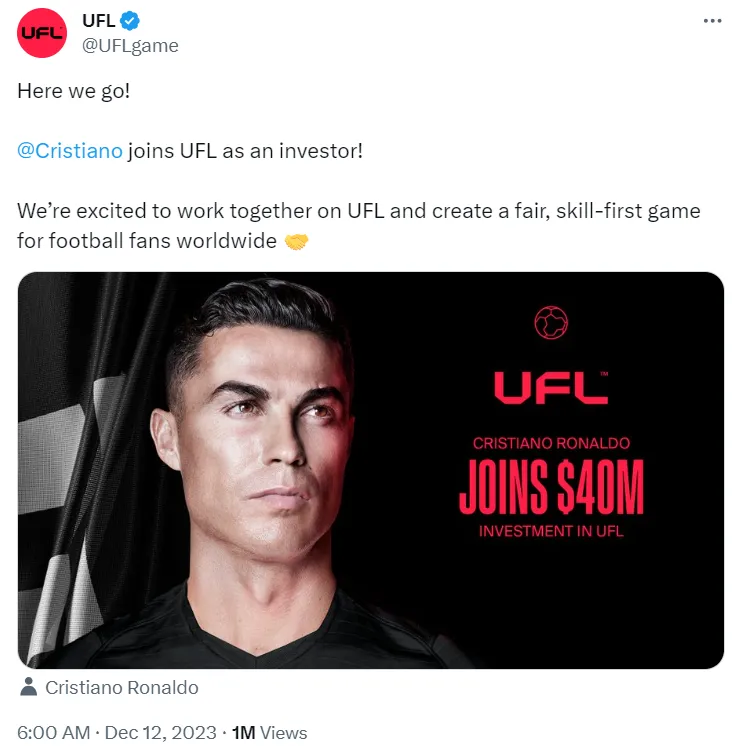 UFL has received yet another boost as it prepares to hit the market as an alternative to EA Sports FC (formerly FIFA) and eFootball. On Tuesday, it announced a $40 million investment from Cristiano Ronaldo, who was already serving as an ambassador.