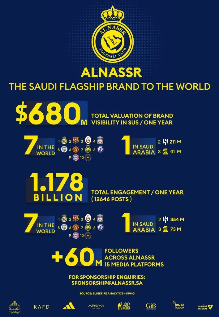 The club claims to be the highest-valued club in the Saudi Pro League and has achieved over 1 billion total engagements on social media within one year.
