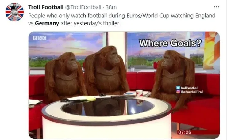 England got the result they wanted and they continue on their way to a long-awaited European Championship title. Germany suffered another early exit from a major tournament, and fans were all over the social media to react with hilarious memes.