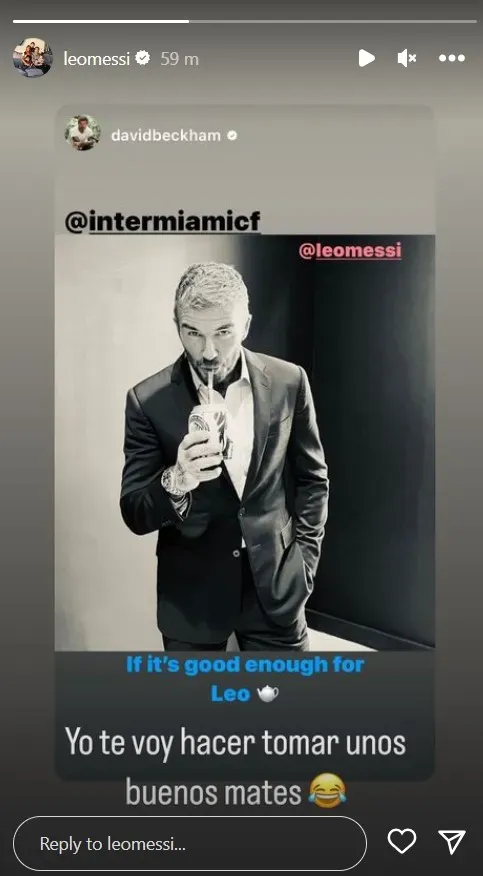 The former England international posted an Instagram story drinking Mate, a traditional drink in Argentina, as a gesture for Messi, who replied joking that he will make Becks try one of his Mates, better than the one Beckham had in the picture.