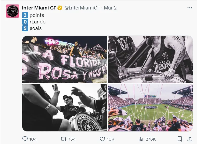 “3 points, 0rlando, 5 goals,” the club’s official account wrote on X (formerly Twitter), with a reference to the city’s original area code (305) and the goalless performance by the rivals at Chase Stadium.
