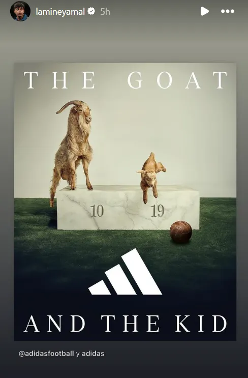 With Yamal looking like the clubās best prospect since Leo, the comparisons between them have been inevitable, and they only increased this summer. Adidas even came up with a creative post to honor both players, and the 17-year-old embraced it by sharing the image on Instagram stories.