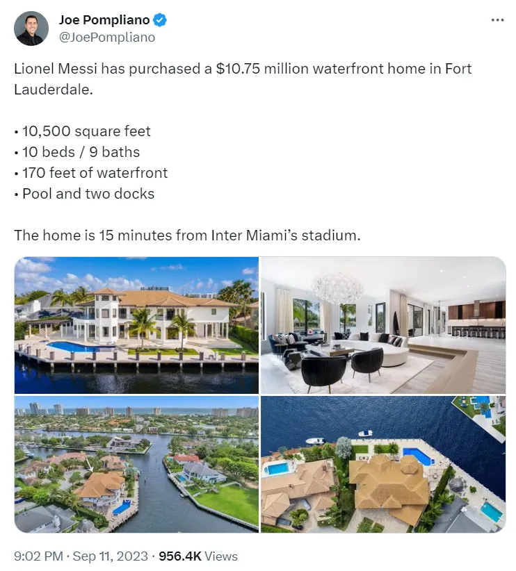 Ross mentioned some details about the mansion, saying that it has a movie theatre among other ācool stuff.ā According to Joe Pompliano, Messi purchased a $10.75 million waterfront home in Fort Lauderdale.