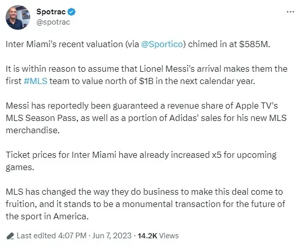 Needless to say, this is one of the biggest moments in US soccer history. With the 7x Ballon dāOr on board, all eyes will be on Major League Soccer from now on. And it could be a game-changer for the sportās future in the country. Besides, Messiās arrival would significantly increase Inter Miamiās worth.